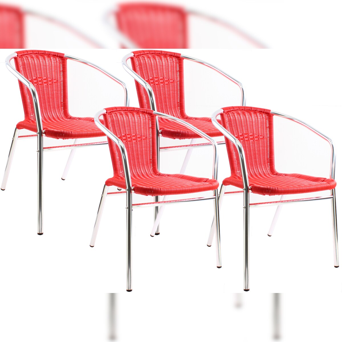 pemora 4-er Set Bistrostuhl Terrassenstuhl Balkonstuhl Aluminium Stapelstuhl Geflecht aus Neoprofil KIR rot
