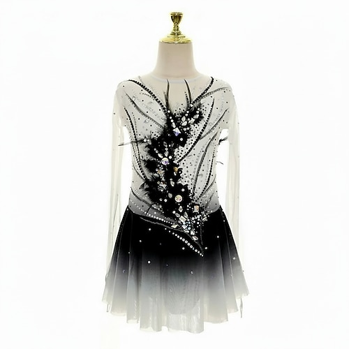 Abito da pattinaggio artistico Per donna Pattinaggio sul ghiaccio Vestito Bianco / Nero Patchwork Orlo asimmetrico Spandex Rete Alta elasticità Allenamento Competizione Vestiti da pattinaggio sul