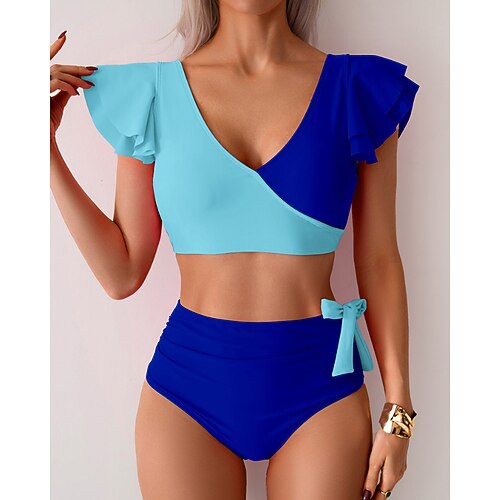 Per donna Costumi da bagno Due pezzi Birichino Costume da bagno Arricciato Patchwork Senza schiena Vacanza Abbigliamento da Spiaggia Blocco di colori Scollo a V Senza Maniche Costumi da bagno