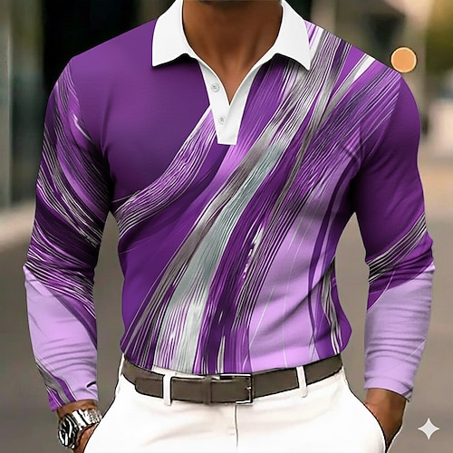 Per uomo Geometrico Linea Polo Manica Lunga Magliette polo Bavero Business Casual Athleisure Abbigliamento quotidiano Stampa 3D Bottoni Primavera Autunno Inverno Blu Viola Arancione