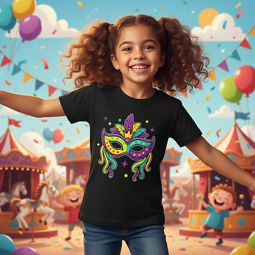 100% Cotone Carnevale di Martedì Grasso 2026 Bambini Ragazze Blu Nero Bianco Grafico Maschera Maglietta Girocollo Manica Corta Vacanza Sport Outdoor Abbigliamento Quotidiano Attivo Neutro Casual
