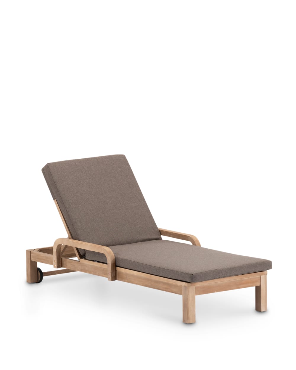 Sdraio in legno con cuscini e ruote marroni