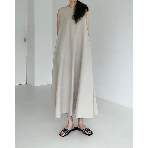 Per donna Abito Lungo Maxi Abito Finto cotone e lino Abiti in cotone e lino Abito Sottoveste Abito Boho Vintage Moda All'aperto Feste Ferie Vestibilità regolare Semplice Senza Maniche Scollo a V