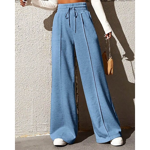 Per donna Gamba larga Pantaloni Streetwear Casual Lungo Vita Alta Semplice Design con Coulisse Elastica Taglio alto Traspirabilità Morbido Micro-elastico Vacanza Streetwear Abbigliamento quotidiano