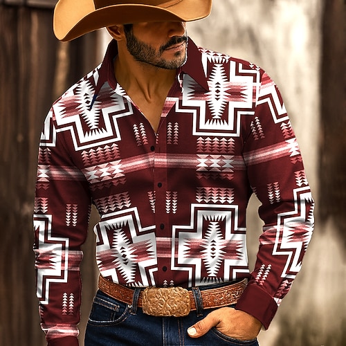 Per uomo Azteco Motivo Geometrico Etnico Camicia Camicia Western Camicia con Bottoni Manica Lunga Vintage Retrò All'aperto Casuale Abbigliamento da lavoro Primavera Autunno Collo ripiegato Stampa 3D