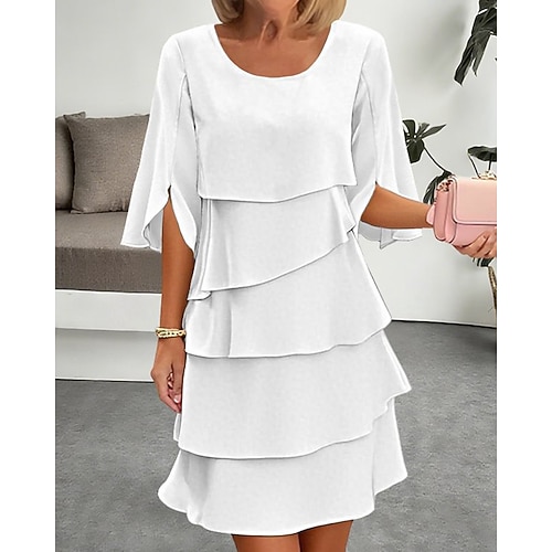 Per donna Mini Abito Vestito in Chiffon Abito a Strati Moda Moderno All'aperto Ferie Uscire Vestibilità regolare Semplice Mezza Manica Girocollo Blu Nero Bianco Rosa Primavera Autunno