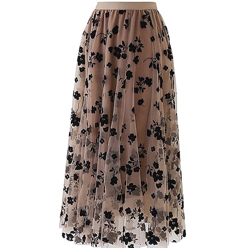 Per donna Linea A Moda Casual Midi Vita Alta Gonne Floreale Stampato Micro-elastico Quotidiano Streetwear Nero Caffè Grigio Estate Spandex Poliestere
