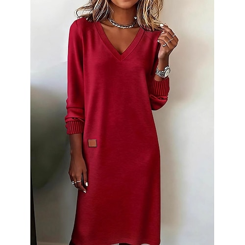Per donna Abito Midi Abito in maglia Vestito Casual Moda Moderno Quotidiano Vacanza Uscire Vestibilità regolare Semplice Manica Lunga Scollo a V Rosso Cachi Grigio chiaro Primavera Autunno Inverno