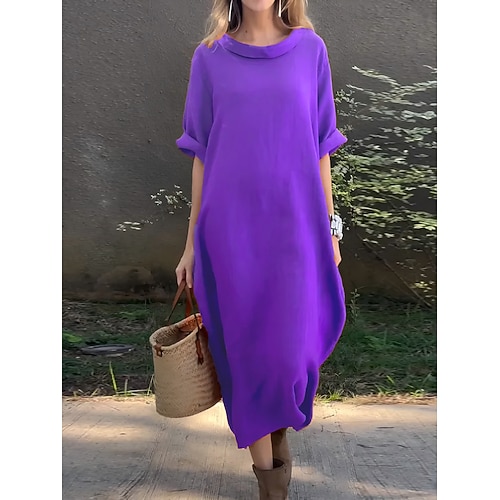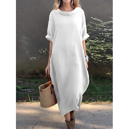 Per donna Abito maxi Abito a Tubino Casual Quotidiano Vestibilità regolare Semplice Manica 3/4 Scollo a Cascata Nero Bianco Giallo Rosso Estate Primavera Autunno
