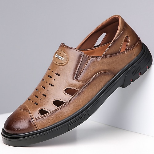 sandali da uomo in pelle marrone con design traspirante e traforato - calzature comode per l'estate, la spiaggia e le attività all'aperto