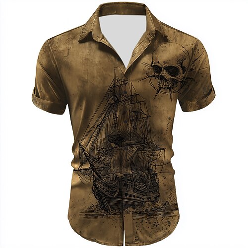 Per uomo Teschio Nautico Barca a vela Camicia Camicia Estiva Camicia con Bottoni Manica Corta Vintage Retrò All'aperto Vacanza Abbigliamento Quotidiano Estate Primavera Collo ripiegato Stampa 3D