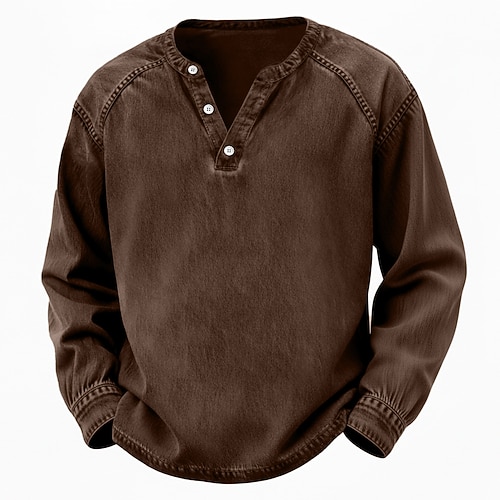Per uomo Maglietta Maglia Henley Camicia 100% cotone lavaggio acido Manica Lunga Semplice Vintage Streetwear Casual Manica corta Henley Casuale Casa Streetwear Primavera Autunno Autunno Inverno