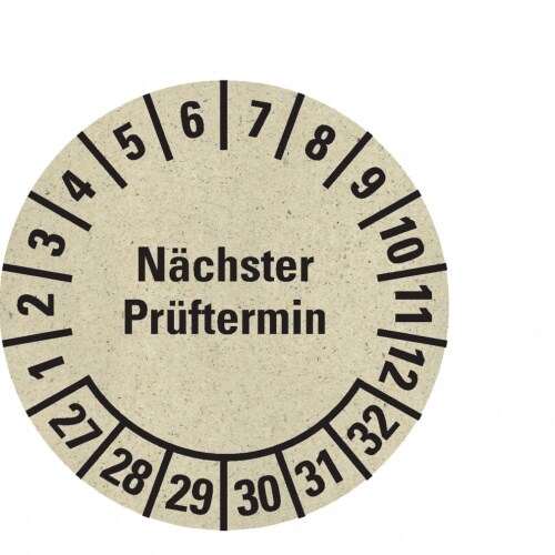 Dreifke® Prüfplakette Nächster Prüftermin 27-32, natur, Graspapier, Ø 30mm, 500 Stk.