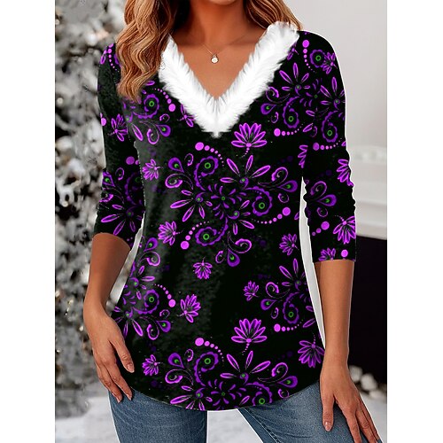 Per donna Tunica Ombre Floreale Grafico Vintage Elegante Classico Manica Lunga Scollo a V Top Regolari Quotidiano Patchwork Stampato Giallo Rosso Blu Viola Verde Autunno Inverno