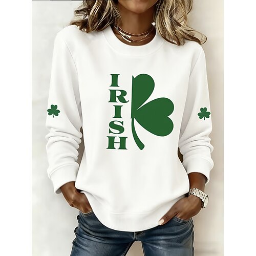 Maglietta da donna per il giorno di San Patrizio con stampa quadrifoglio moda a manica lunga girocollo top regolari casual verde erba giallo verde chiaro verde militare verde scuro primavera e autunno