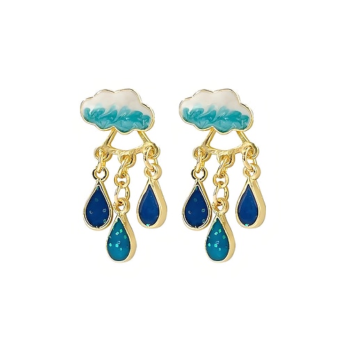 orecchini in lega bohémien da donna con design a forma di nuvola e fulmini a forma di goccia di pioggia, vari colori: perfetti per un uso casual e quotidiano