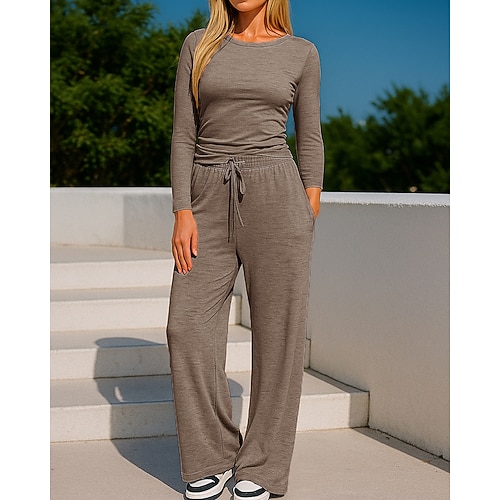 Per donna Abbigliamento sportivo da salotto Abiti da 2 pezzi Tinta unita Completo Abbigliamento Autunno Nero Rosa All'aperto Viaggio Sportivo Traspirante Manica Lunga Sport Abbigliamento sportivo