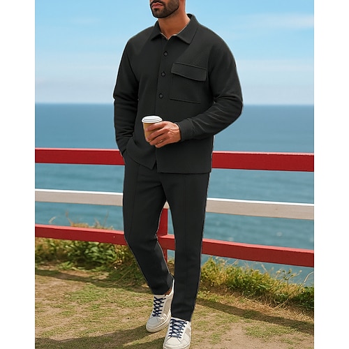 Per uomo Abiti da giacca Abiti da salotto Bottoni con tasca Tinta unita Completo Abbigliamento Autunno Inverno Nero Bianco Escursionismo Lavoro Viaggio Manica Lunga Sport Abbigliamento sportivo