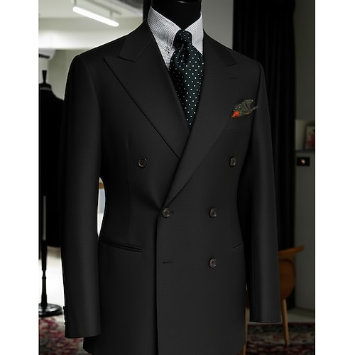 Per uomo Giacca blazer Collare di chiusura Vintage Classico Tinta unita Blazer Nero Borgogna Vestibilità su misura Doppiopetto Sei Bottoni
