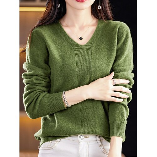 Per donna Pullover Maglione Di tendenza Informale Morbido Tinta unica A coste A V Lavorato a maglia Manica lunga Top regolari Maglia Esterno Giornaliero Per uscire Verde foresta Rosso ciliegia