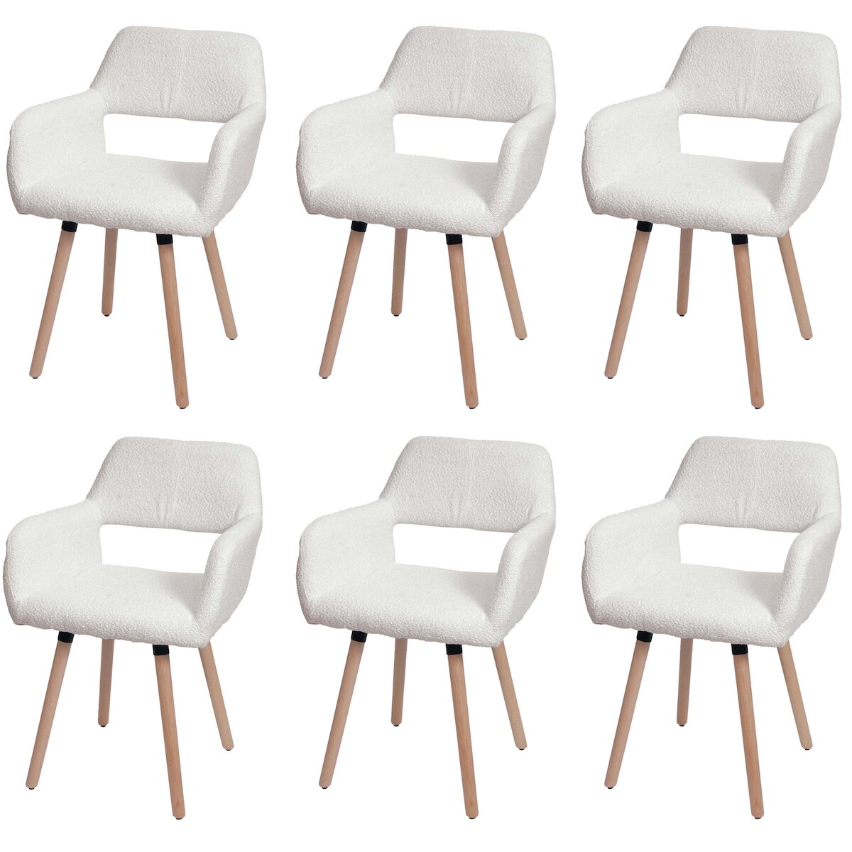 Mendler 6er-Set Esszimmerstuhl HWC-A50 II, Stuhl Küchenstuhl Polsterstuhl, Holz Stoff/Textil Bouclé (450g/m²) FSC® ~ creme
