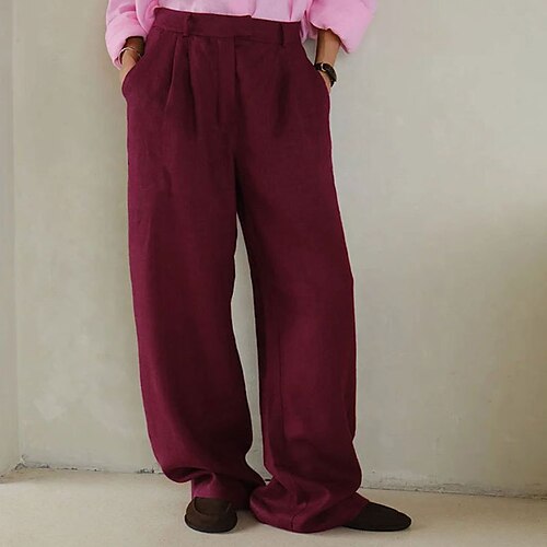 Per donna Pantaloni in cotone e lino Chinos Vacanza Streetwear Casual Lunghezza intera Vita media Tinta unica Tasca Comodità Confortevole Traspirante Micro-elastico Quotidiano All'aperto Streetwear