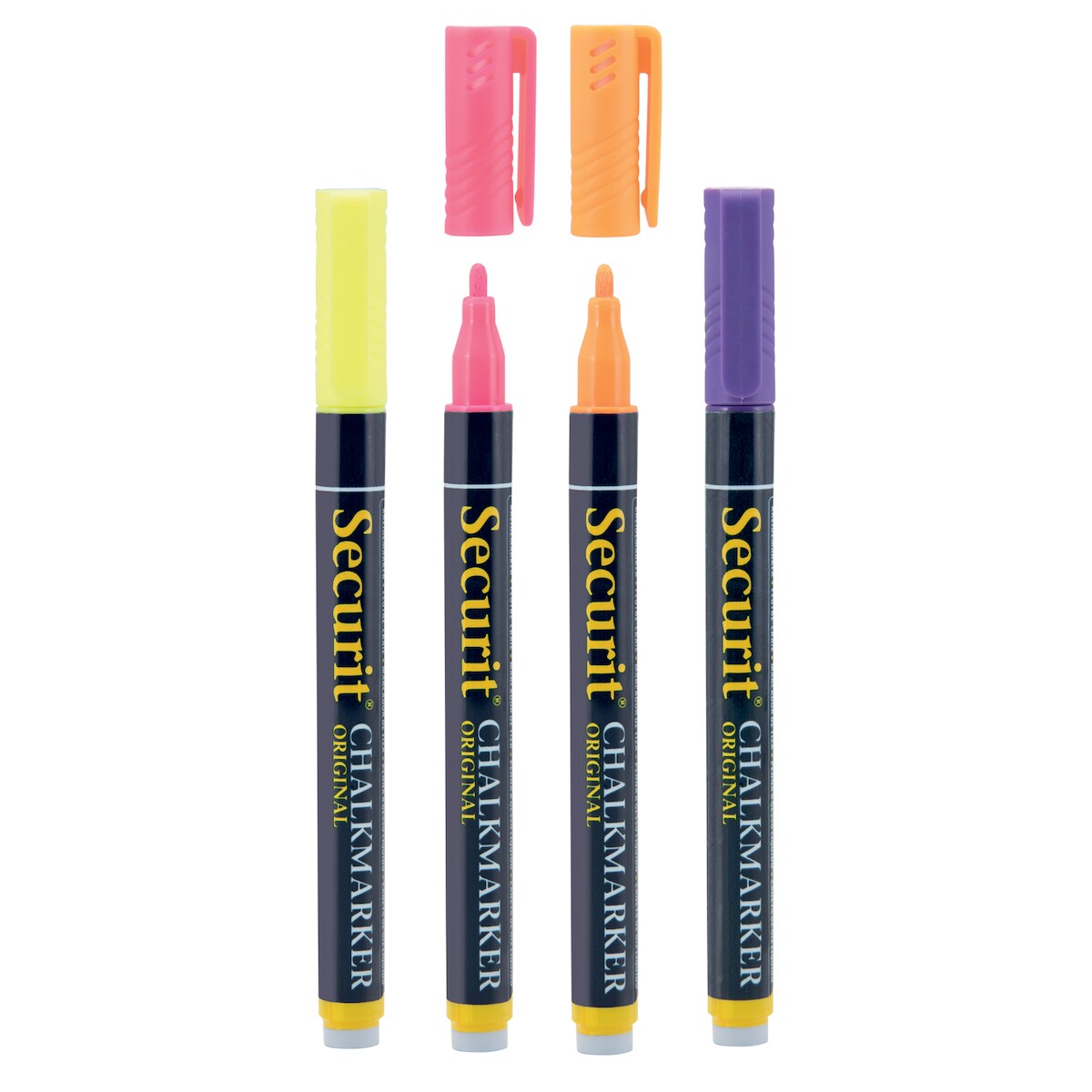 Securit® 4er Set Flüssigkreidemarker in tropischen Farben Violett, Rosa, Orange, Gelb Spitze in Kugelform 1-2mm