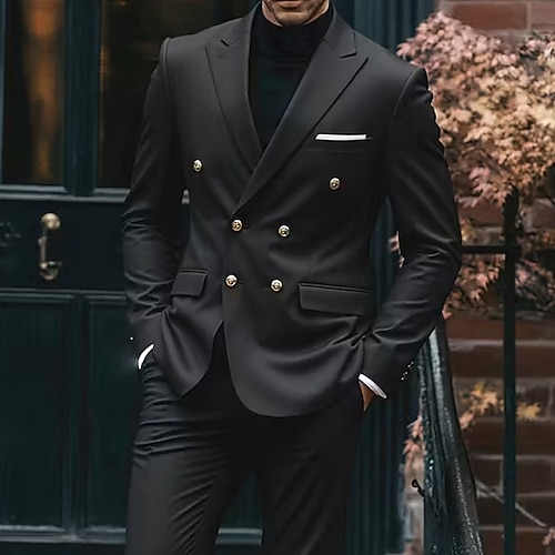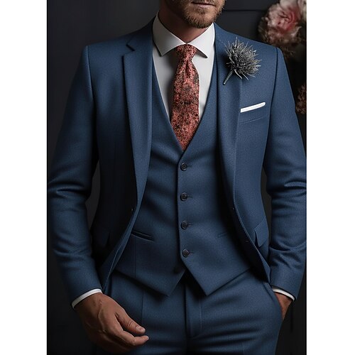 Uomo Matrimonio Affari Completi in Tweed Bavero classico Nero Blu scuro Formale Tinta unita Vestibilità su misura 3 pezzi Monopetto a un bottone