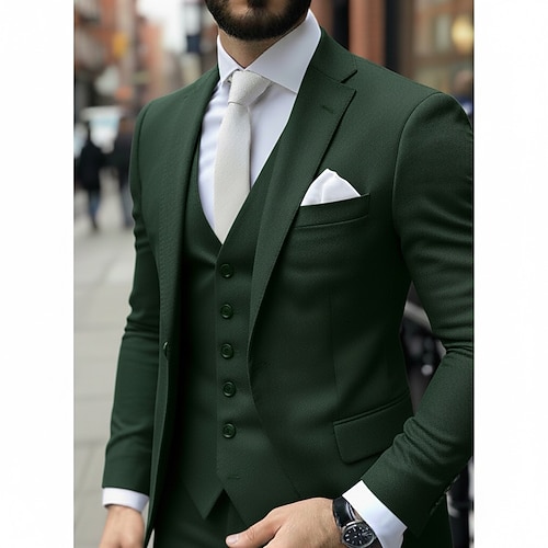 Uomo Matrimonio Casuale Abiti da lavoro Bavero classico Nero Borgogna Quotidiano Affari Tinta unita Vestibilità su misura 3 pezzi Monopetto a un bottone