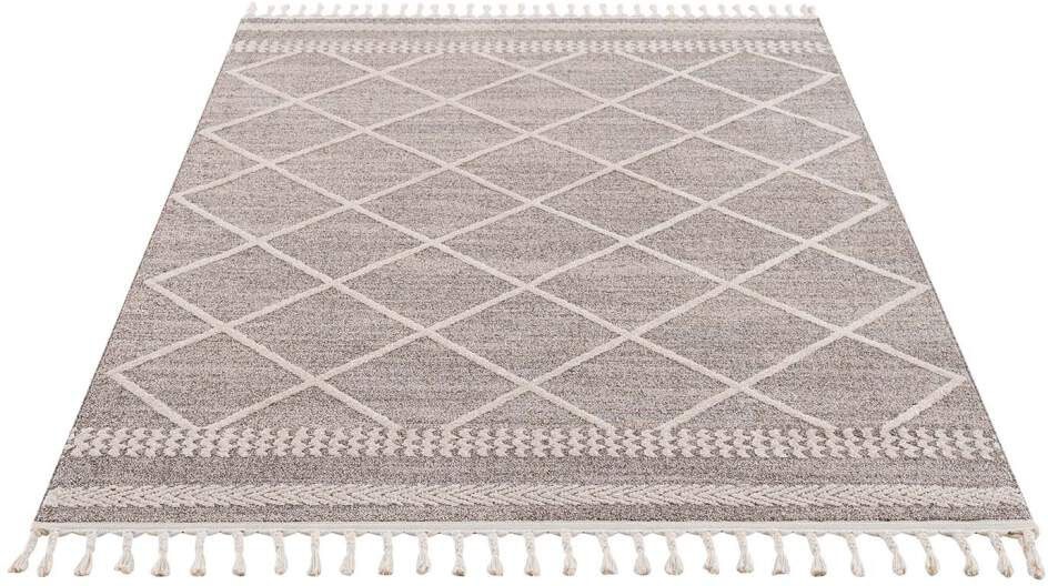 Teppich CARPET CITY "Art 2645", braun (mokka), B:160cm H:7mm L:230cm, Polypropylen, Teppiche, Fransenteppich, Kurzflor, mit Kettfäden, Rauten-Optik