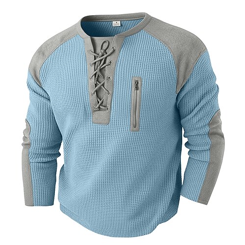 Per uomo Maglietta Waffle Maglietta Manica Lunga Girocollo Collo con lacci Autunno Autunno Inverno Tinta unica Blocco di colori Tradizionale / Vintage Casual Coulisse Casa All'aperto Sport Outdoor