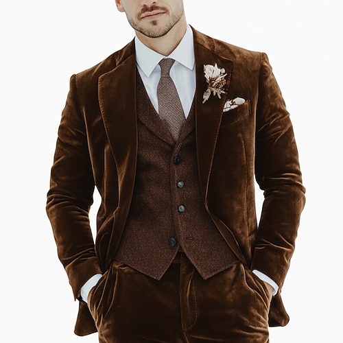 Uomo matrimonio invernale Feste Abito di velluto Bavero classico Nero Borgogna Affari Formale Tinta unita Vestibilità su misura 2 pezzi Monopetto Due Bottoni