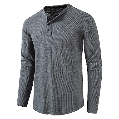 Per uomo maglietta Camicia Henley Waffle Camicia Henley T-shirt Maglia a maniche lunghe Liscio Henley Strada Da mare Manica lunga A maglia Abbigliamento Di tendenza Originale Essenziale