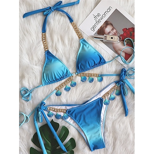 Costume da bagno bikini da donna 2 pezzi Cheeky Slim senza schiena per vacanze al mare ombre collo halter senza maniche