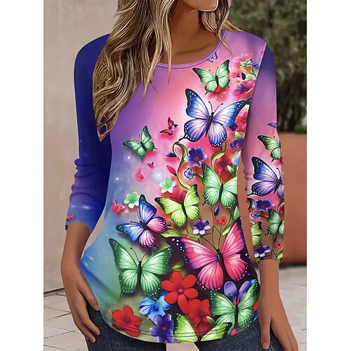 Per donna Maglietta Ombre Grafico Farfalla Vintage Moda Elegante Manica Lunga Girocollo Top Regolari Quotidiano Weekend Stampato Blu Viola Verde Estate Primavera Autunno