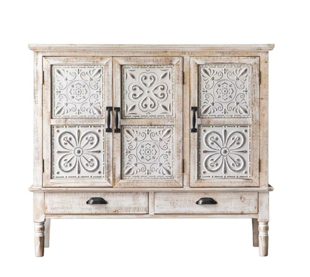 Credenza effetto legno bianco camino effetto fiamma 157x35x75cm