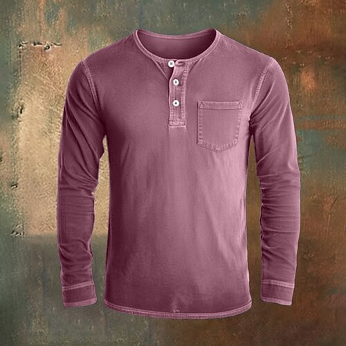 Per uomo Maglia Henley Camicia 100% cotone lavaggio acido Maglietta Manica Lunga Vintage Tinta unita Retrò Vintage Casual Henley Stile Vintage Lavato Henley Casuale Primavera Autunno Tutte le stagioni