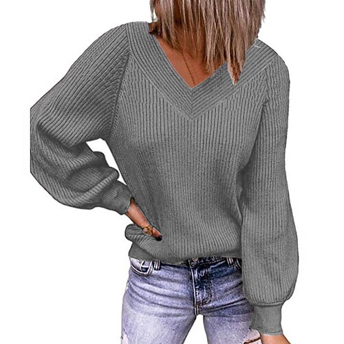 Per donna Felpa Maglione Vintage Moda Streetwear Tinta unica Scollo a V Lavorato a maglia Manica Lunga Top Regolari Maglia Quotidiano Ferie Uscire Nero Rosso Autunno Inverno