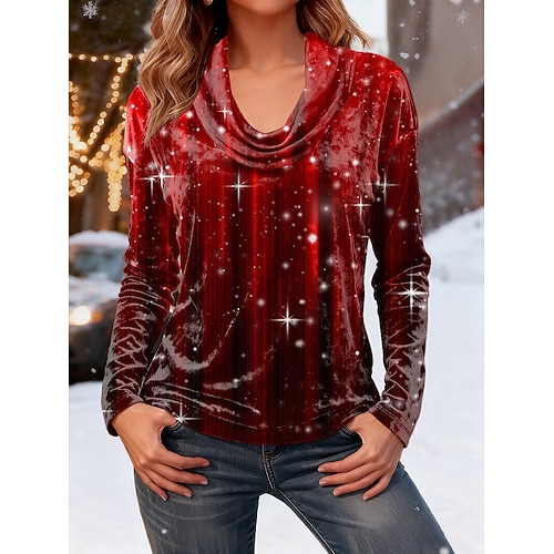 Per donna Maglietta Grafico Geometrico Elegante Vintage Moda Manica Lunga Scollo a Cascata Top Regolari Quotidiano Uscire Weekend Stampato A Strati Blu Rosa Rosso Marrone Verde Inverno