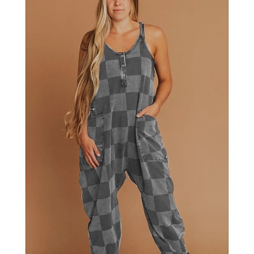 Per donna Normale Tuta Streetwear Tinta a nodi Senza Maniche Scollo a V Tasca Vacanza Streetwear Vestibilità comoda Nero Blu Viola Autunno