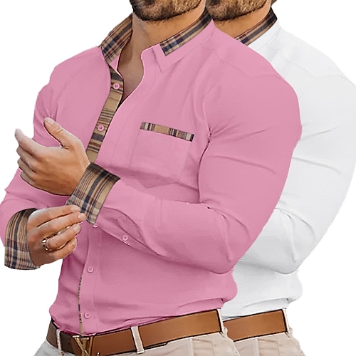 Per uomo Camicia Camicia elegante Camicia casual Camicia con Bottoni Blocco di colori Formale Affari Bianco rosa Bianco nero Pink Blu Bianco blu Manica Lunga Bavero Primavera Autunno Tutte