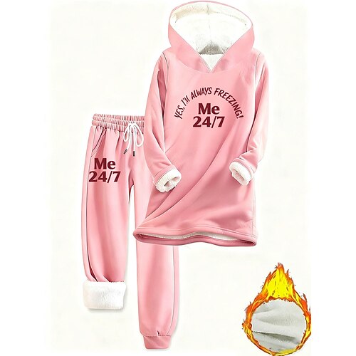 Per donna Quotidiano Elegante Set da due pezzi Tuta Set di Pantaloni Manica Lunga Con Cappuccio Grafico Lettera Coulisse Stampato Casuale Quotidiano Blu Nero Rosa Autunno Vestibilità comoda