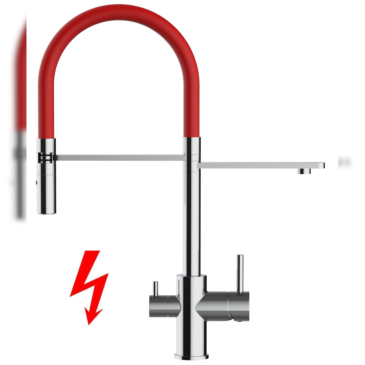 Vizio Niederdruck 3 Wege Wasserhahn Küchenarmatur Spültischmischer FL, Verchromt, mit 360° schwenkbarem Rot Auslauf und abnehmbare 2 strahl Handbrause