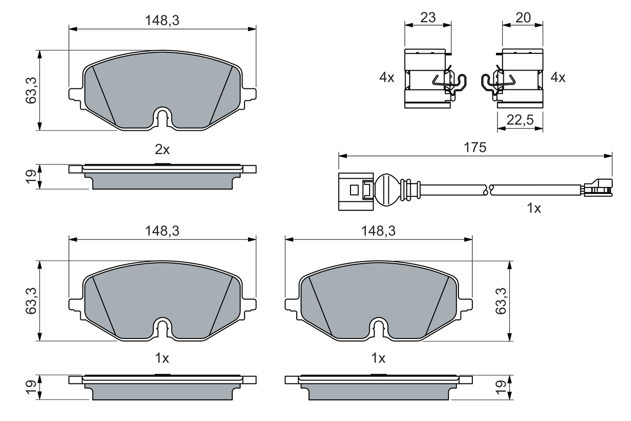 BOSCH Bremsbelagsatz, Scheibenbremse 0 986 460 072 vorne rechts links mit Zubehör für SKODA VW SEAT CUPRA AUDI 5WA698151P 5WA698151Q 5WA698151A