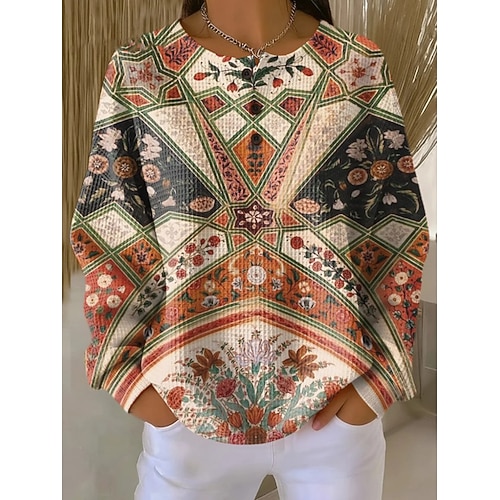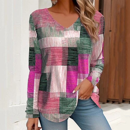 Per donna Blusa Blocco di colori Elegante Western Y2K Manica Lunga Scollo a V Top Regolari Ferie Uscire Patchwork Stampato Giallo Rosa Rosso Blu Verde Estate Primavera Autunno