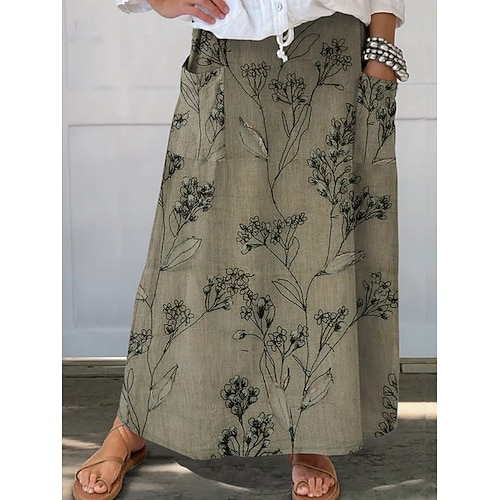 Per donna Gonna Casual Maxi Misura del girovita medio Gonne Floreale Floreale Inelastico Quotidiano Vacanza Marrone Blu scuro Bianco blu Beige Estate Poliestere