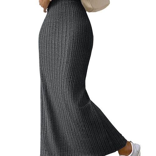 Per donna Gonna Aderente Gonna Lunga Elegante Moda Sexy Casual Maxi Misura del girovita medio Gonne Semplice Arricciato Elasticizzato Ufficio / Carriera Streetwear Nero Mandorla Grigio Autunno Fil di