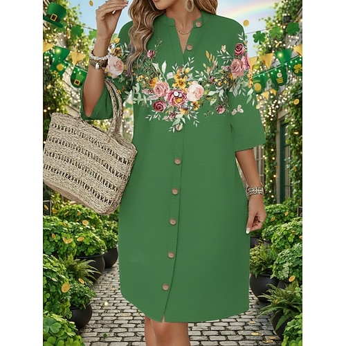 Giorno di San Patrizio Per donna Abito Lungo Maxi Abito Vestito Casual Vestito T-Shirt Moda Essenziale Moderno Quotidiano All'aperto Vacanza Vestibilità regolare Grafico Trifoglio Mezza Manica Scollo