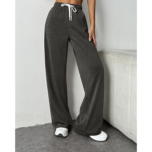 Per donna Gamba larga Chinos Vacanza Streetwear Casual Lunghezza intera Vita media Semplice Design con Coulisse Elastica Confortevole Micro-elastico All'aperto Vacanza Quotidiano Grigio scuro Bianco