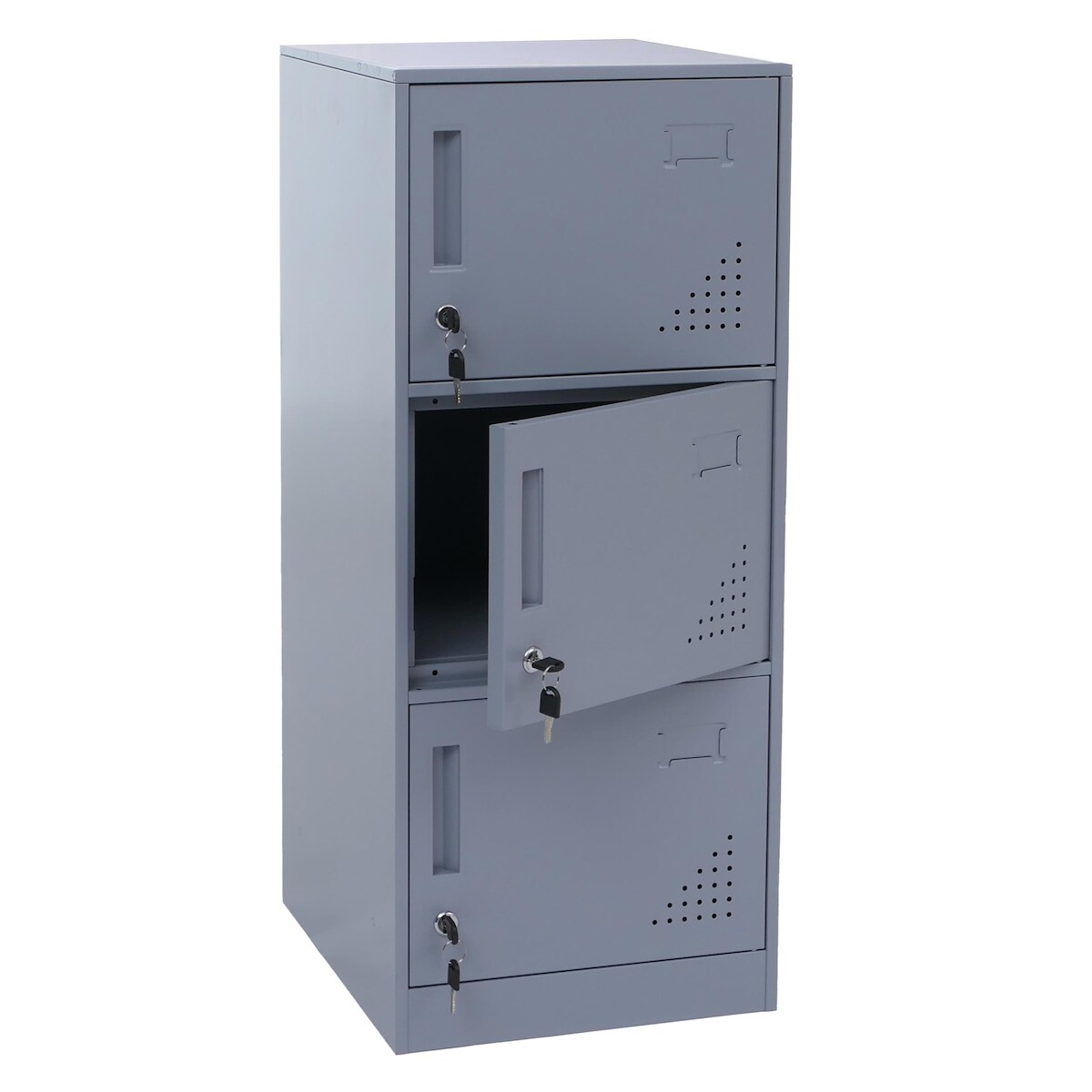 Mendler Spind HWC-P63, Schließfach Wertfachschrank Schließfachschrank 3 Türen, 90x38x45cm Stahl ~ grau